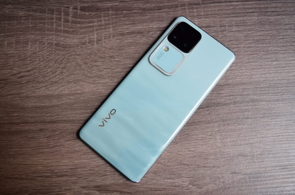 El dorso del vivo v30 ‘Azúl Oceáno’ con el módulo fotográfico y la luz Aura OIS. Foto: DPL News.