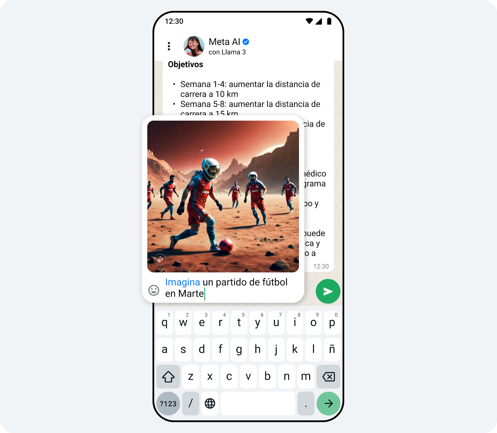 Meta AI presenta nuevas herramientas creativas y de edición de imágenes,como ‘Imagina’, una función que permite generar una imagen personalizada a partir de una foto del usuario mediante una descripción de texto. Actualmente,esta herramienta se encuentra en fase de prueba en Estados Unidos.