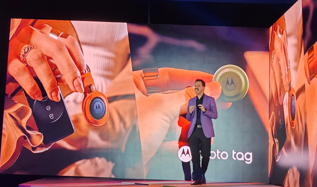 Motorola México también presentó moto tag,un pequeño tag Bluetooth LE apto para accesorios con Ultra Wide Band,que ayuda a los usuarios a localizar sus posesiones más valiosas,desde la cartera hasta el equipaje,con una accesibilidad emblemática,a través de la red Find My Device de Google.
