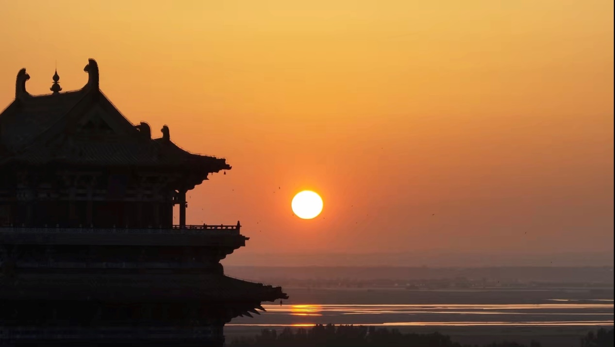 Guanque Tower, one of China’s four great towers, is a landmark building along the Yellow River. Zhao Wenjia, a guide at the Guanque Tower Scenic Area in Yongji City, explained that the tower was first built during the Northern Zhou Dynasty and was celebrated as a prime location for high-altitude views during the Tang and Song dynasties. Scholars and poets ascended the tower to enjoy the scenery, looking out at the beauty of Zhongtiao Mountain and the rushing river below, leaving behind timeless poetry.