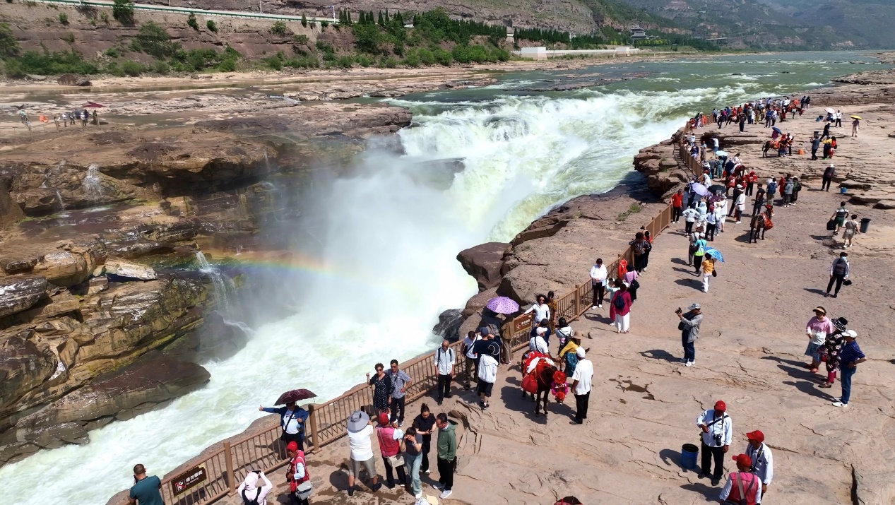 Yang Jiqing, the guide at Shanxi Hukou Waterfall Scenic Area, explained that as the second-largest waterfall in China, Hukou Waterfall is renowned as the “Yellow River wonder” and is one of the widest yellow waterfalls in the world. The torrent of water cascades down with unstoppable force, like thousands of horses galloping, stirring up waves like snowdrifts and producing a thunderous roar, reminiscent of ancient war drums.