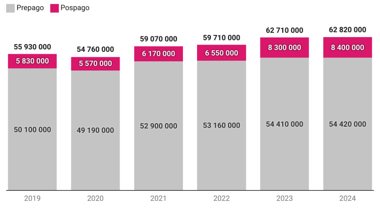 Se incorporaron unas 110 mil líneas móviles en Argentina en la primera mitad de 2024. Según los registros del Ente Nacional de Comunicaciones (Enacom),el país terminó el período con 62.8 millones de líneas de este tipo,lo que significa un crecimiento de 0.2 por ciento en el período analizado. El segmento pospago sigue en aumento pero solo representa el 13.3 por ciento del parque total.