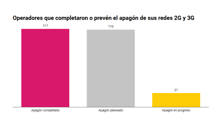 En el detalle,se informa que 128 empresas en 63 sitios completaron o planearon apagones 2G e hicieron lo propio 126 empresas en 54 países.