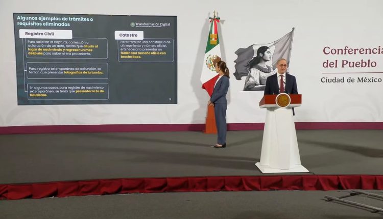 Durante la conferencia matutina de la presidenta Claudia Sheinbaum,el funcionario dio a conocer que se han reducido trámites y requisitos de 342 (de los que llevan revisados) a 151 gracias a la digitalización.